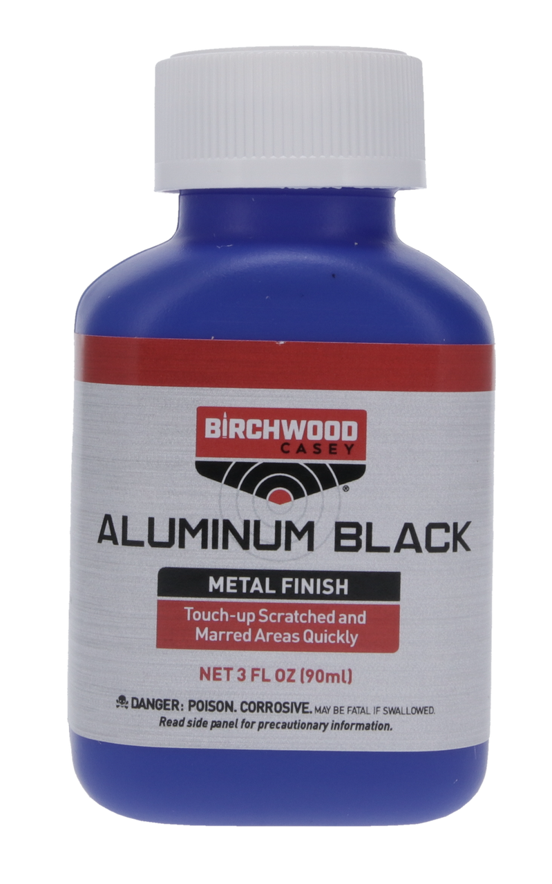 The room temperature chemical used by gunsmiths and industry to blacken aluminum parts. Restores scratched and marred areas quickly. Fast-acting liquid is easy to apply with no dimensional change. Color will vary from deep gray to black depending on alloy. Aluminum™ Black Metal Finish is also excellent for blackening name plates, plaques, trophies and other engraved items.