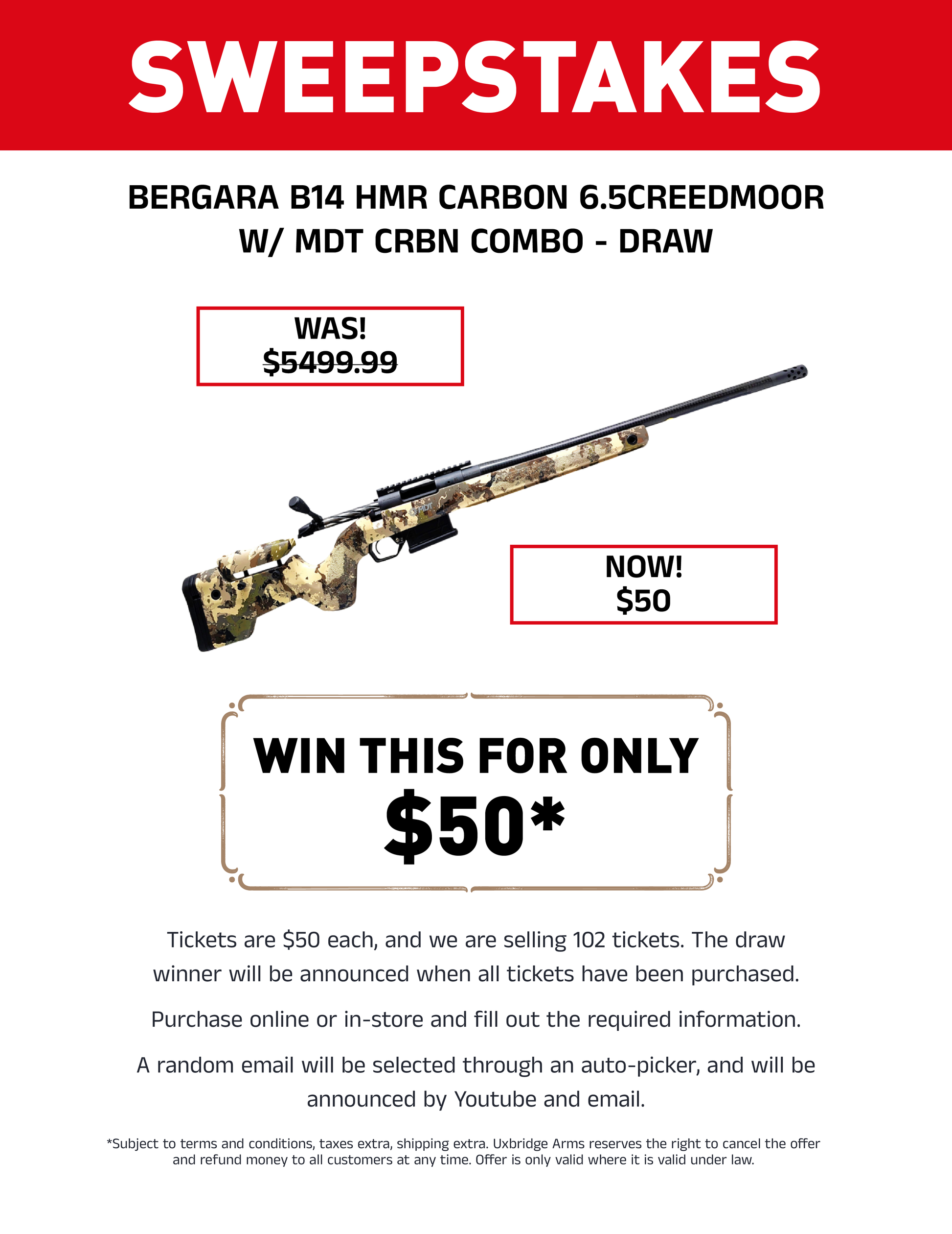 *Draw is subject to Uxbridge Arms terms and conditions, taxes extra, shipping extra. Uxbridge Arms reserves the right to cancel the offer and refund money to all customers at any time. Offer is only valid where permitted under law. Offer open to Canadian residents only with a vaild PAL.
