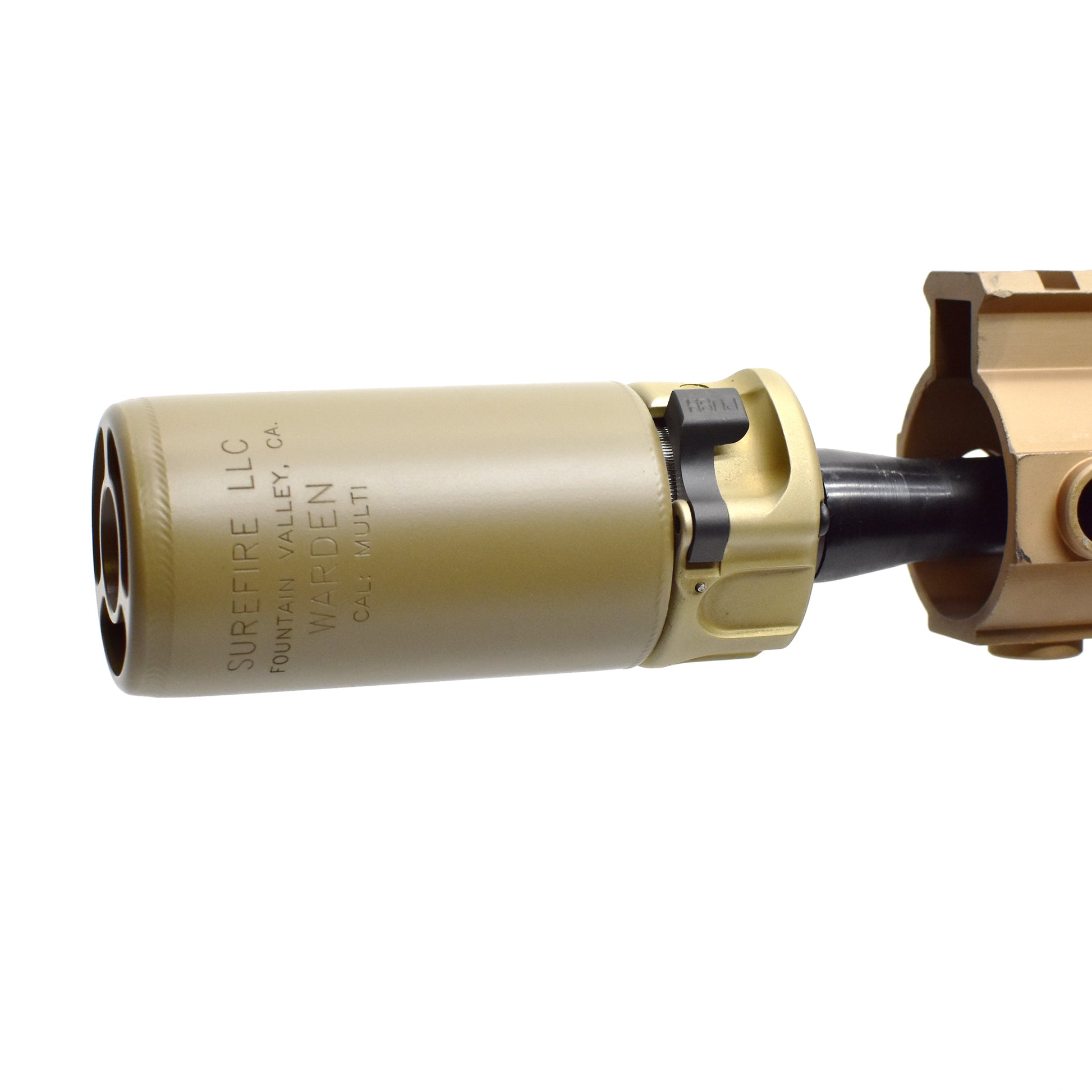 Surefire 3-prong 5.56mm flash hider, and accompanying Surefire Warden blast regulator,