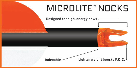·6.5mm Microlite Nocks (8 grains) pre-installed — shortens the critical distance between the shaft and bowstring for improved alignment and reduced weight.