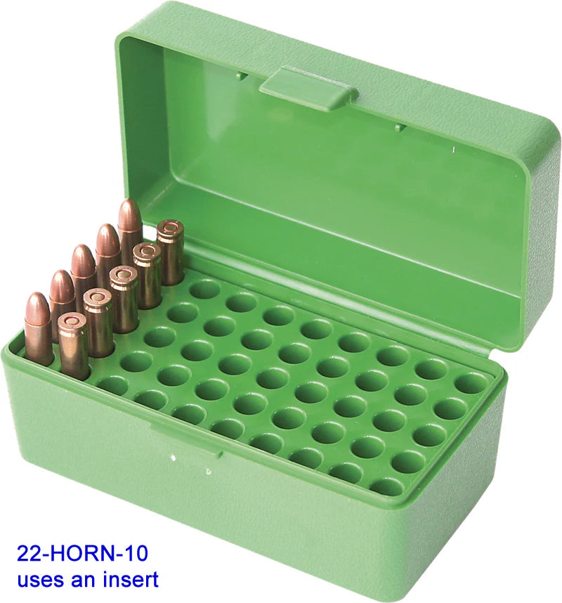 22-HORN-10 - Ammo Box 50 Round Flip-Top 22 Hornet And 30 Carbine