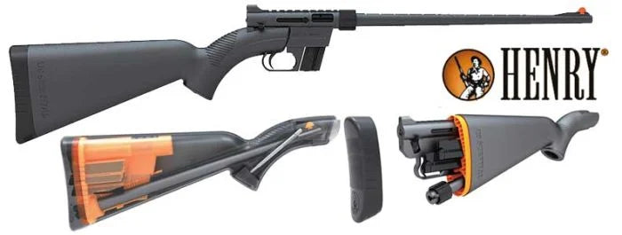 When disassembled, the pieces fit inside the impact-resistant, water-resistant buttstock. Assembly is as easy as attaching the receiver to the stock, inserting the barrel, and screwing on the nut. In a few seconds, without any tools, the Henry U.S. Survival Rifle is ready for action. It has a sturdy steel barrel covered in tough ABS plastic and a protective coating for complete corrosion resistance. It’s engineered for perfect balance and maintaining its tack-driving accuracy, even after thousands of rounds.