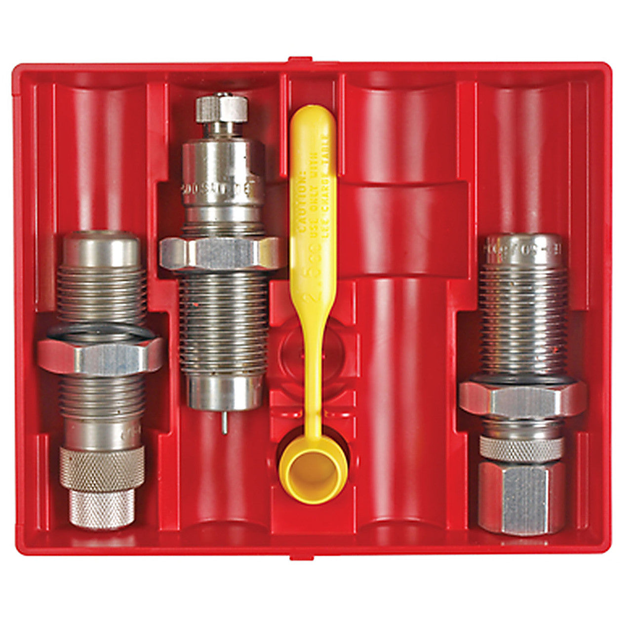 Lee 460 S&W Pistol 3-Die Set includes Carbide Full Length Sizing Die, Bullet Seating Die, Powder Thru Expanding Die, Universal Shell Holder, Powder Dipper and Instructions/Load Data.