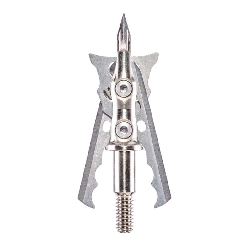 The revolutionary Hypodermic Crossbow NC utilizes cutting-edge finger-like tabs on the blades’ Slip Cam™ pivot point to “anchor” them in place while in the closed position, completely eliminating the need for a SHOCK COLLAR™, dental band or O-ring, while still providing reliable blade retention. Upon impact, the blades instantly deploy to a 2-inch cutting diameter, administering the gaping wounds that bowhunters have come to expect from the field-proven Rage Hypodermic series. The new Hypodermic Crossbow NC features the lethal Hypodermic hybrid tip with an even narrower profile and needle-like ferrule. In flight, that streamlined design makes for superior field-tip accuracy. The two .035″ thick blades deploy on impact, sliding into a swept-back blade angle while the monstrous 2″ cutting diameter delivers a wide entry hole for gruesome blood trails and brief tracking jobs.