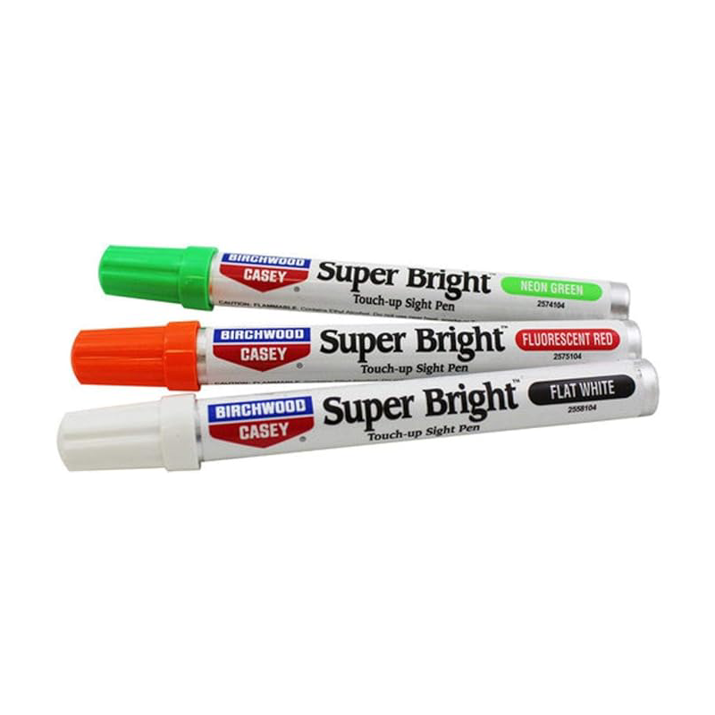 Shoot better in any light! These pens provide a fast and easy way to touch-up chipped, dull or scratched sights. Super Bright™ pens contain a fast-drying, lead-free paint with superior adhesion and durability.