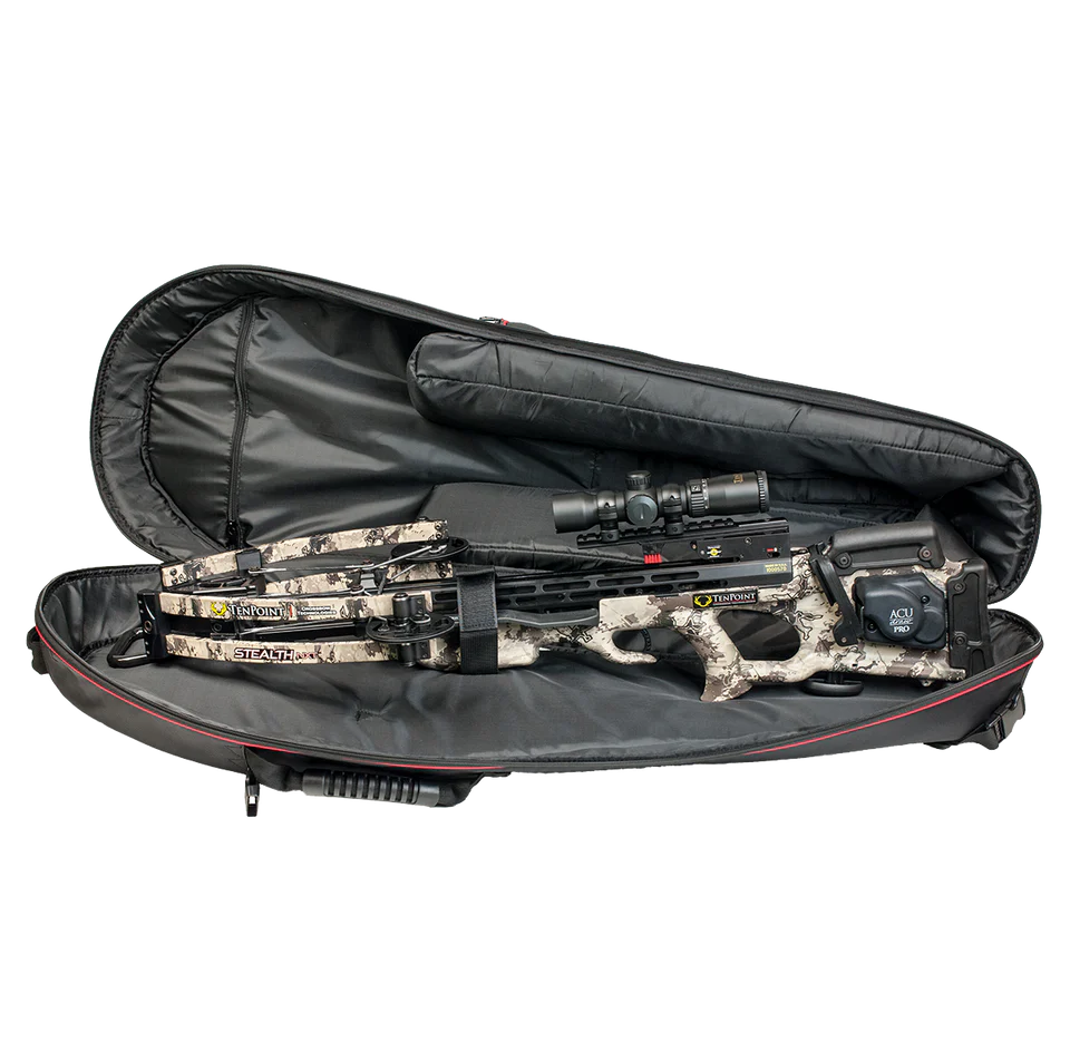 Designed for optimal protection and durability, the narrow soft case is built with everything you need to protect and transport your crossbow. Lightweight and rugged, the water-resistant case features a foam-padded interior with a hook and loop strap to secure the crossbow during travel, as well as two external zippered pockets and one internal zippered pocket for accessory storage. Its side-mounted rubber grip handle and top nylon handle provide easy transportation and storage. In addition, the case features two padded quick-release straps that can be used individually for “sling-style” carrying or together for “backpack-style” carrying, as well as Molle straps on the exterior pockets and backpack straps, allowing hunters and shooters to attach additional accessories.